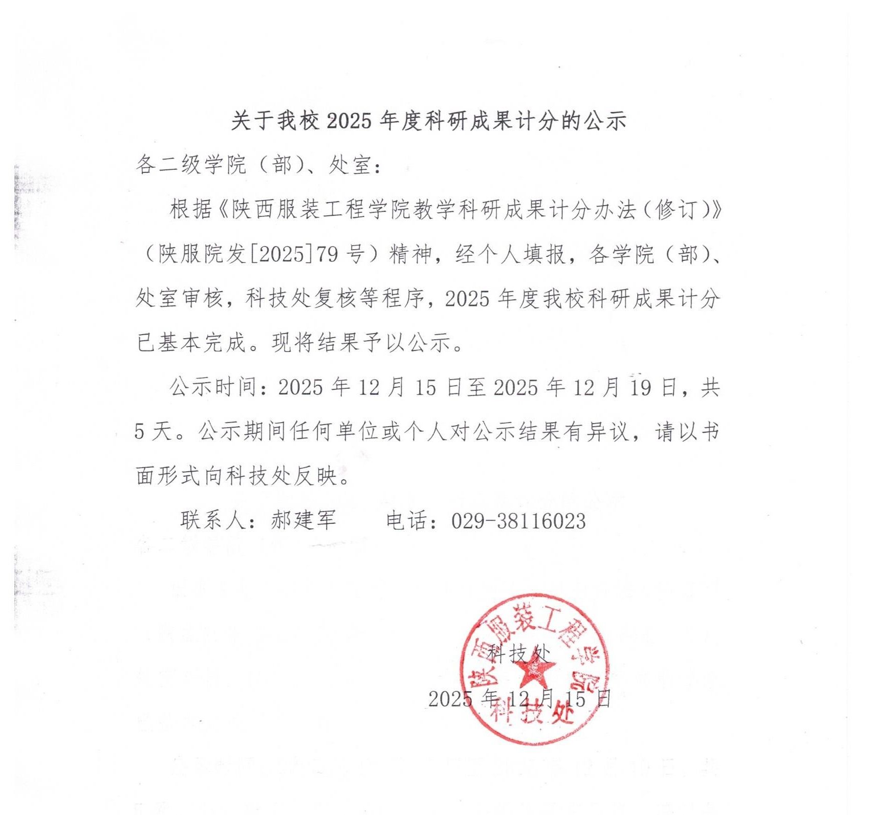 关于我校2025年度科研成果计分的公示