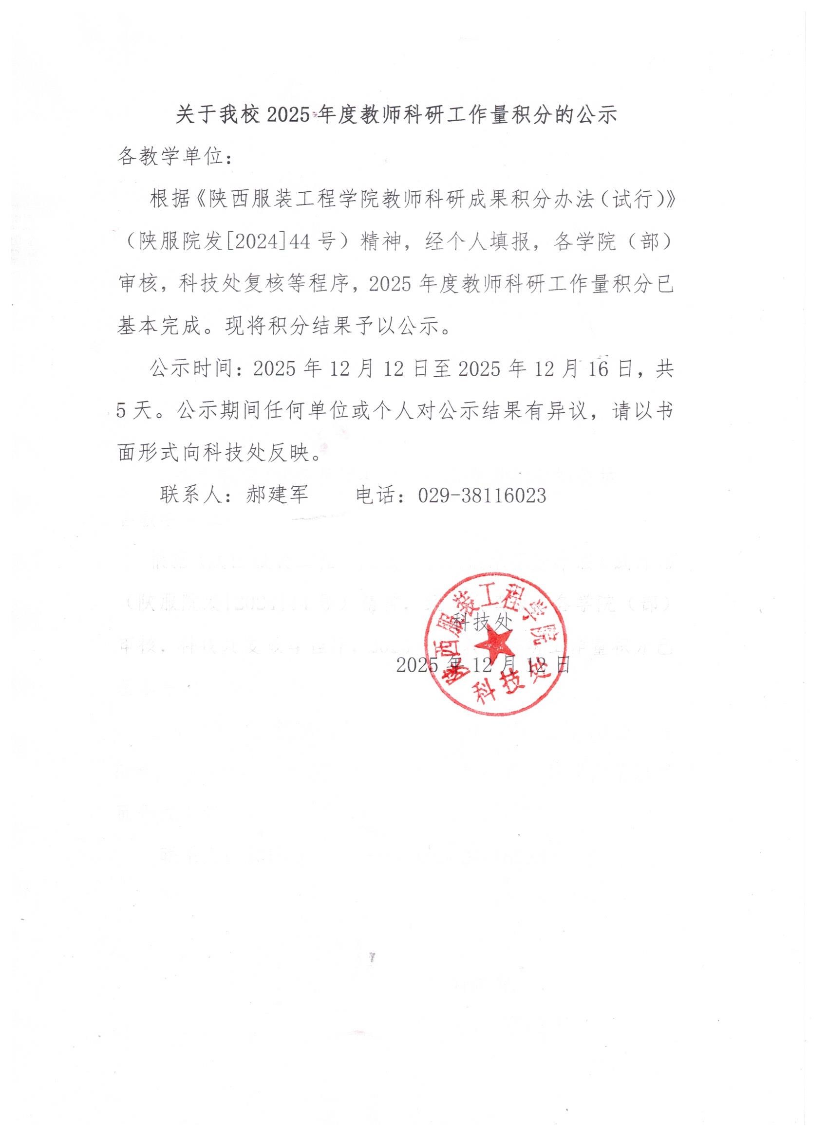 关于我校2025年度教师科研工作量积分的公示
