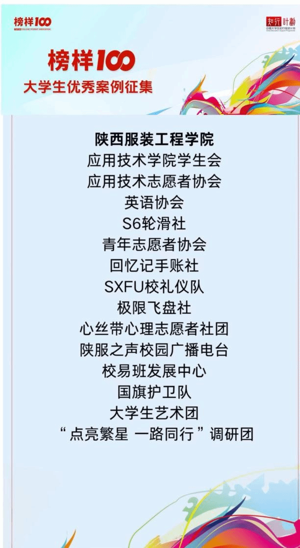 “榜样100”大学生优秀案例征集活动自启动以来,聚焦乡村振兴、志愿服务、助学支教、创新创业、专业赛事等多个青年行动领域,累计吸引全国600余所高校近7000支大学生社团及团队参与,是全国极具影响力的高校青年实践标杆评选活动。此次我校多支团队上榜,既是对团队过往实践成果的高度认可,更是我校深耕立德树人根本任务、强化实践育人成效的生动体现。