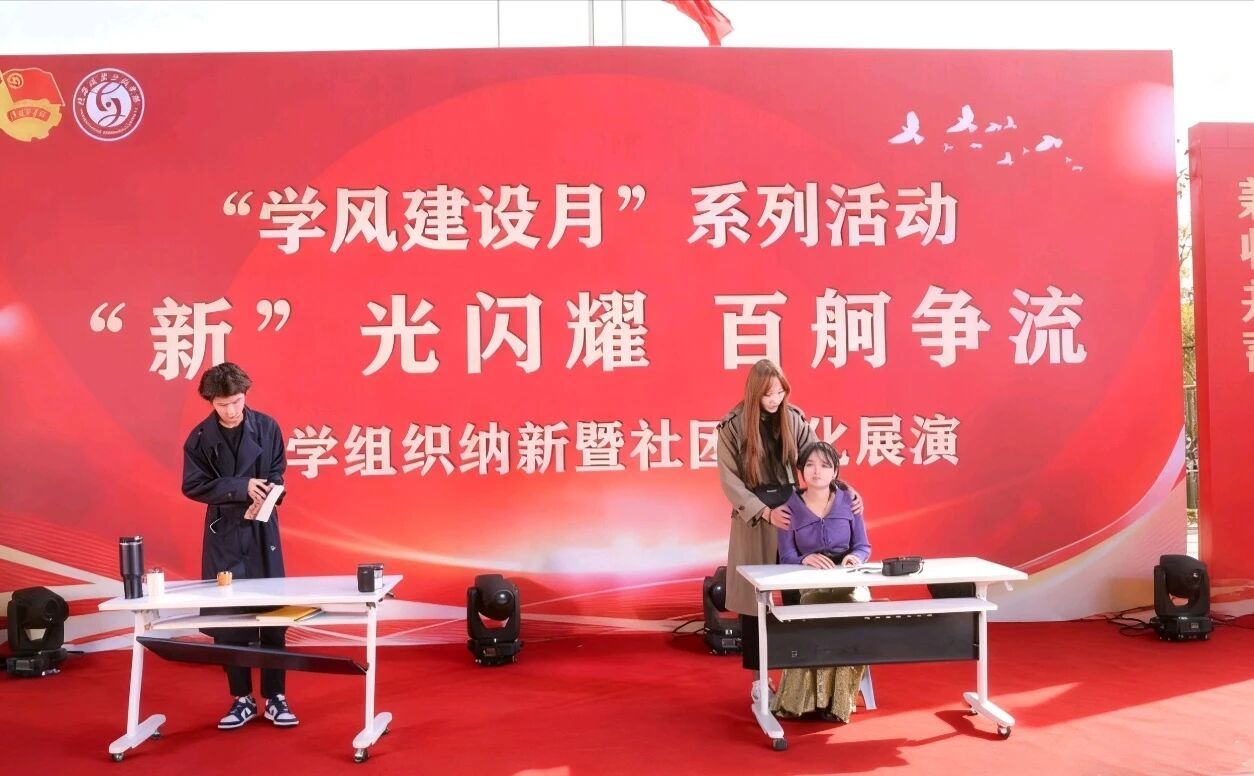 为持续推动校园文化建设,强化学生社团的创新发展与示范引领作用,为全校同学搭建彰显个性、互动成长的多元平台,助力广大学子在实践中提升综合素养,实现全面发展,2025年10月21日,学校在喷泉广场举行“‘新’光闪耀,百舸争流”团学组织纳新暨社团文化展演活动。
