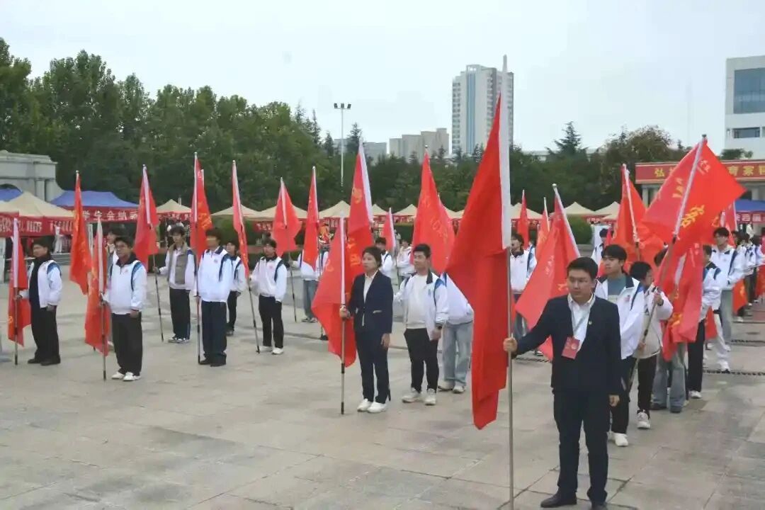 随着激昂的音乐响起,各社团代表扛着鲜艳的旗帜穿梭在校园,红色旗帜似青春的音符在风中跳跃,点燃了现场每一位同学的热情。他们脚步轻快活泼,把社团的独特风采尽情挥洒。这是速度与活力的交融,更是社团人齐心同力、拼搏向上的生动诠释。
