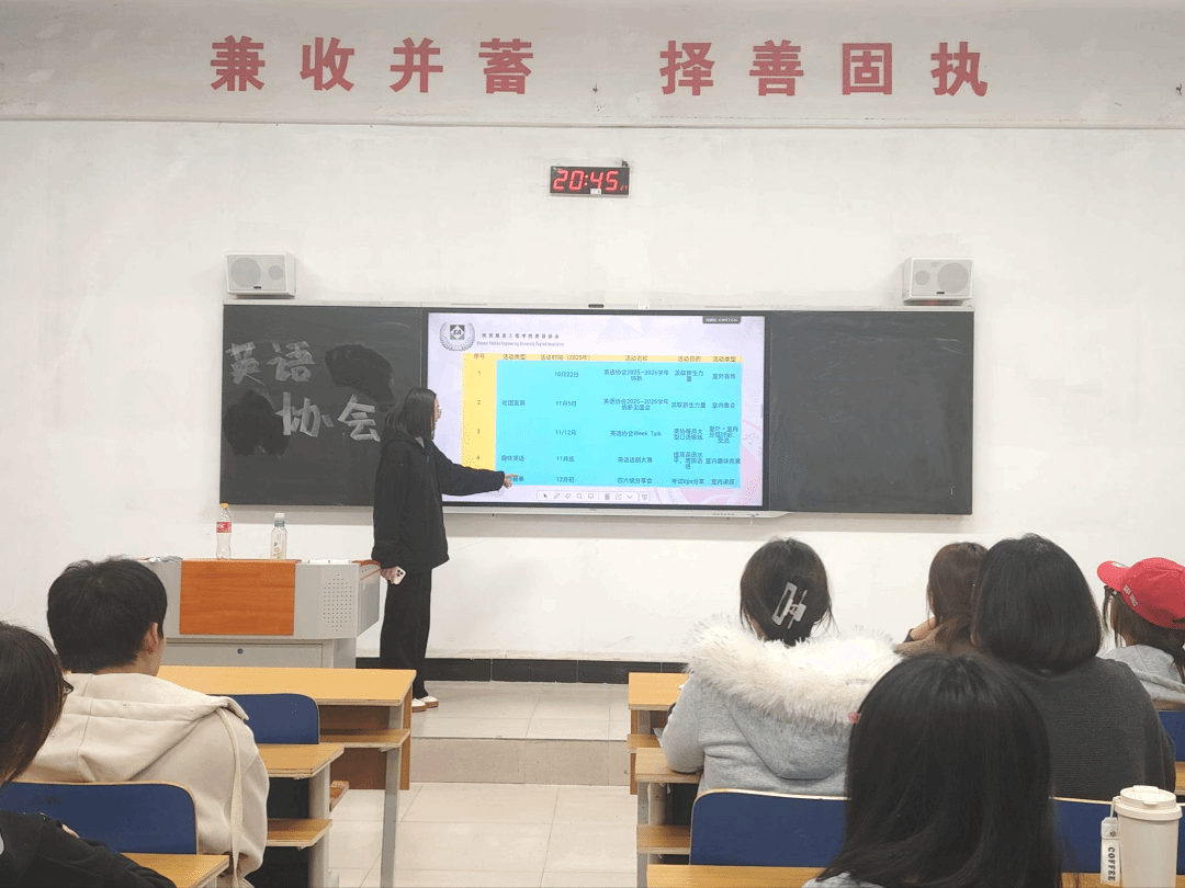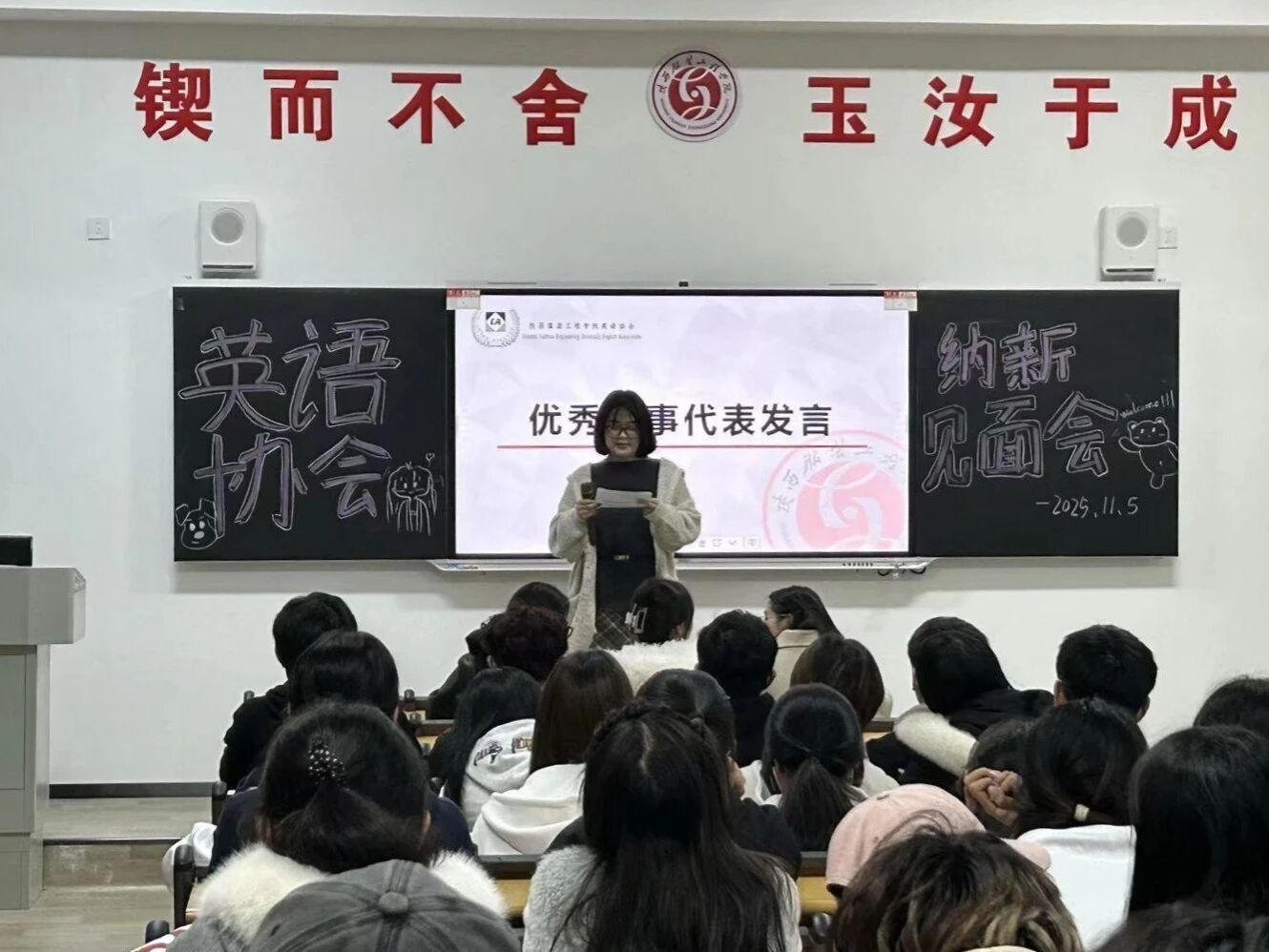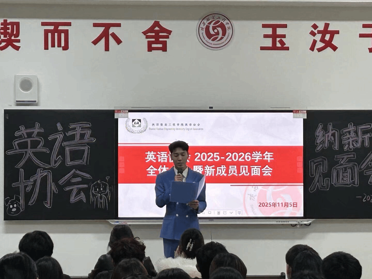 为促进社团持续健康发展、激发成员活力,陕西服装工程学院英语协会于2025年11月5日在教学楼G307教室举办了2025—2026学年换届大会。参与本次换届大会的有英语协会主席团、部长及全体新成员。