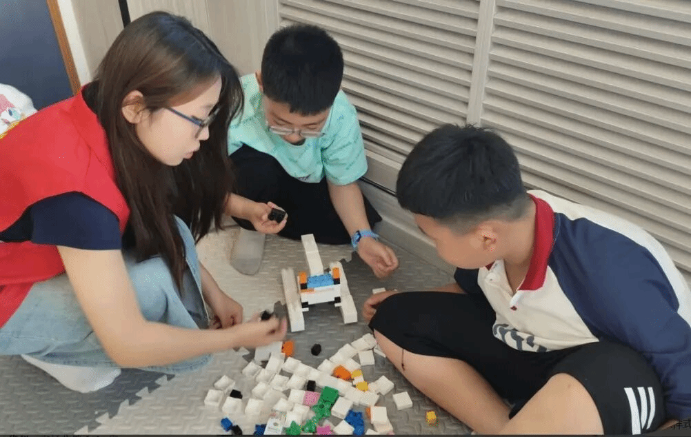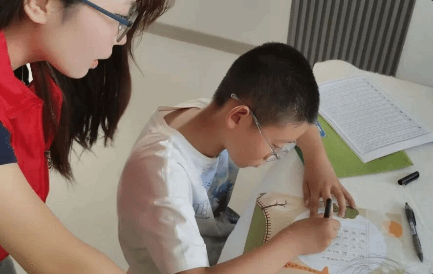 暑托班里,我主要负责看顾小朋友写作业,为他们答疑解惑,带着做手工、玩益智游戏,还一起听讲座。看着孩子们从作业难题前的皱眉,到解开后的欢呼;从手工创作时的懵懂,到成品诞生的自豪,我真切感受到付出的意义。