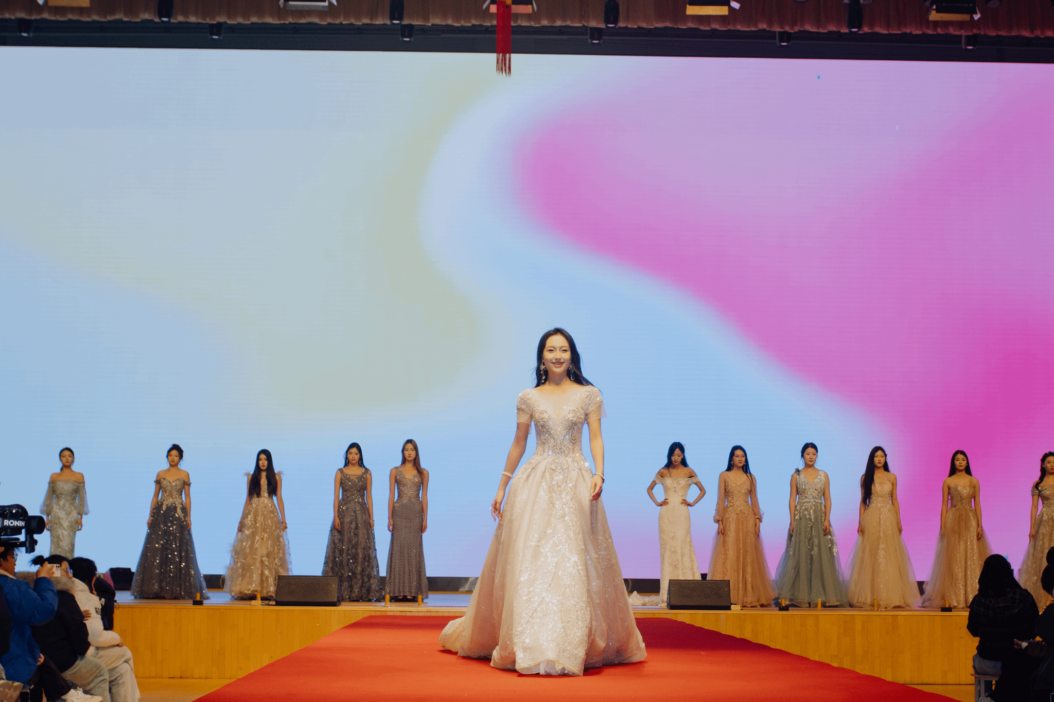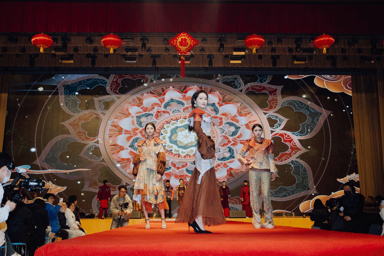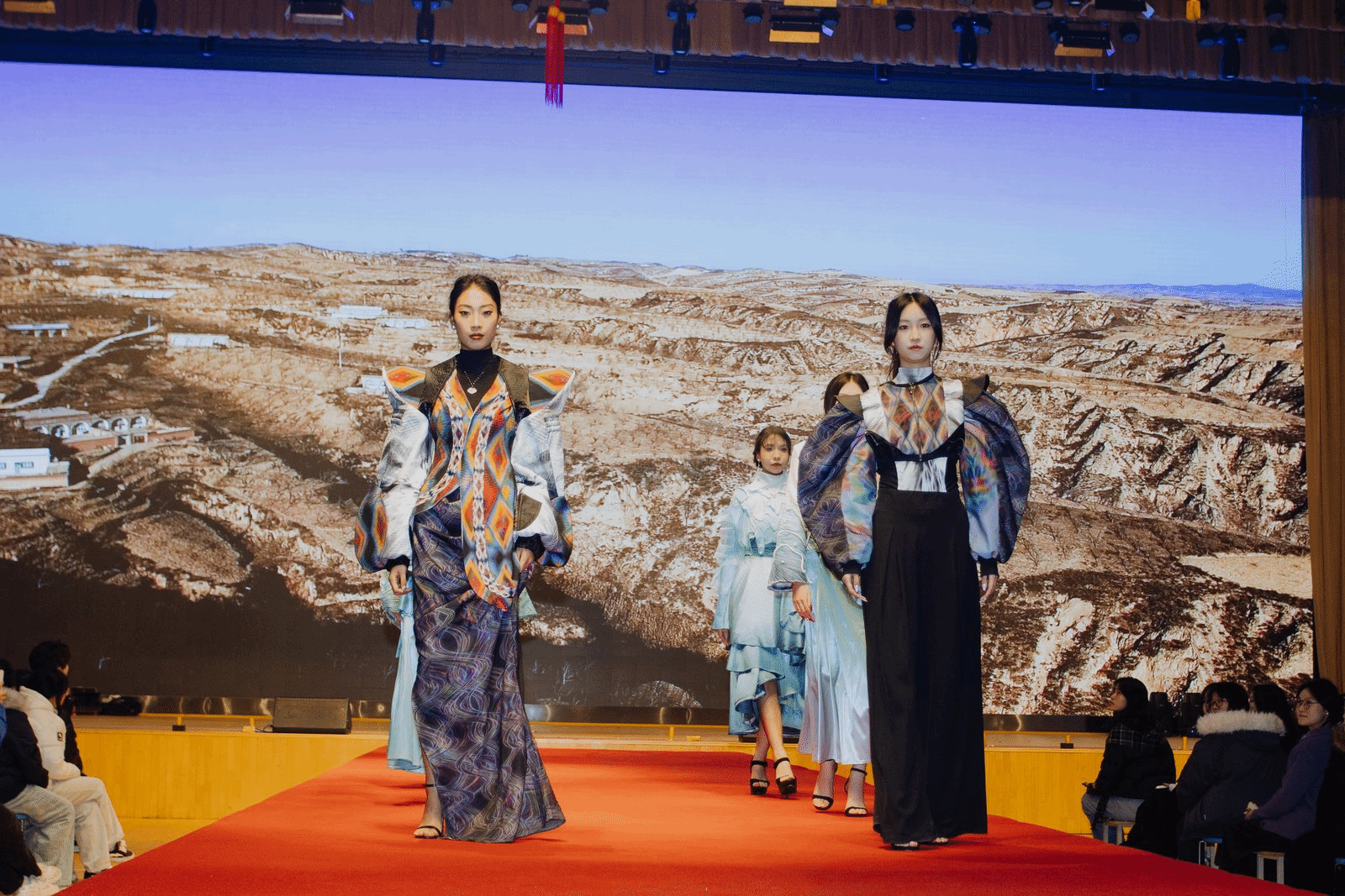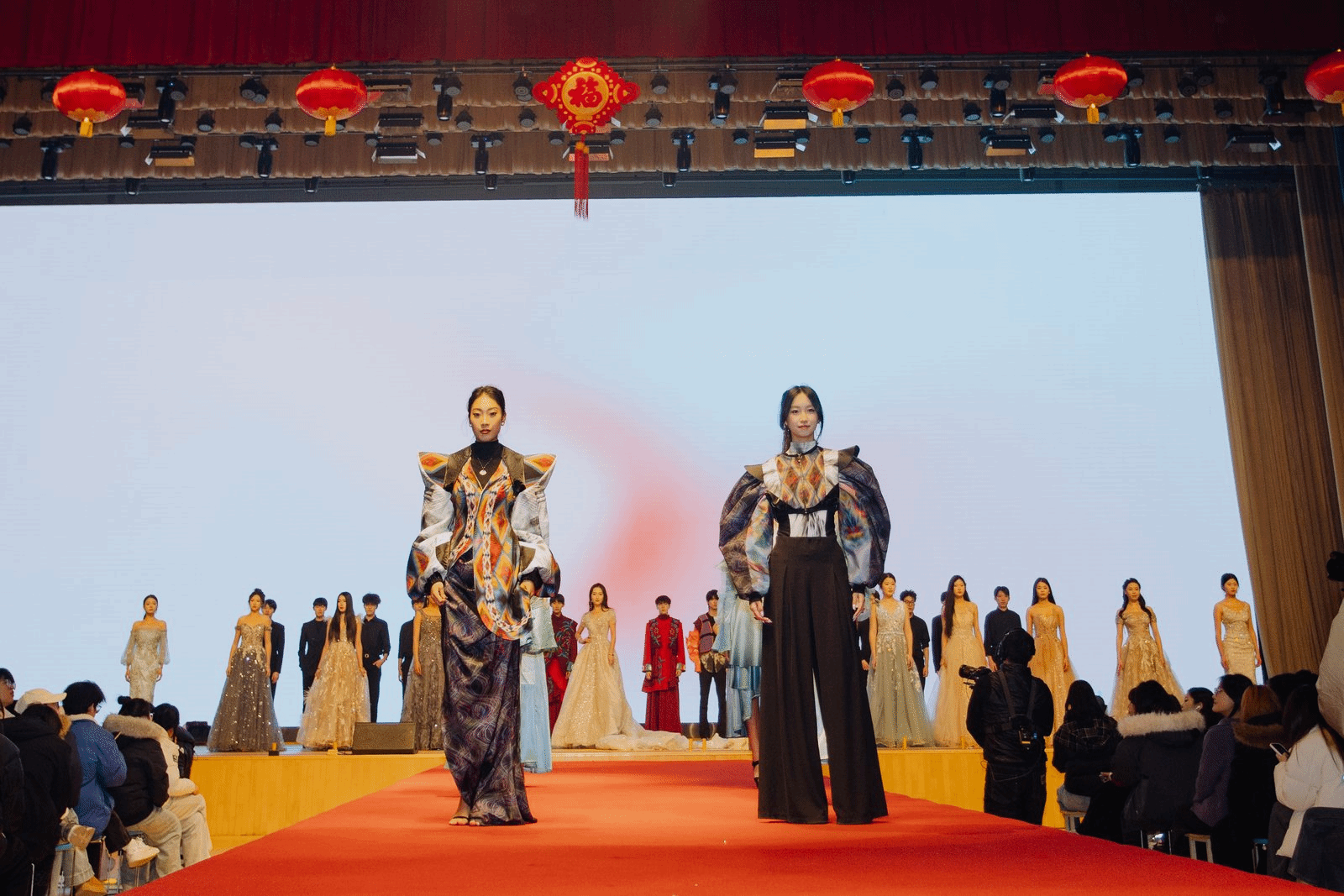 陕西服装工程学院学子带来的走秀《星河・耀丝路》舞台设计独具匠心,模特身着融合丝路文化元素与现代时尚剪裁的服饰,在变幻的灯光下如星河般璀璨流动,将千年丝路的璀璨文明与当代设计巧思完美融合,每一步都似在演绎一幅流动的历史画卷,尽显时尚底蕴。