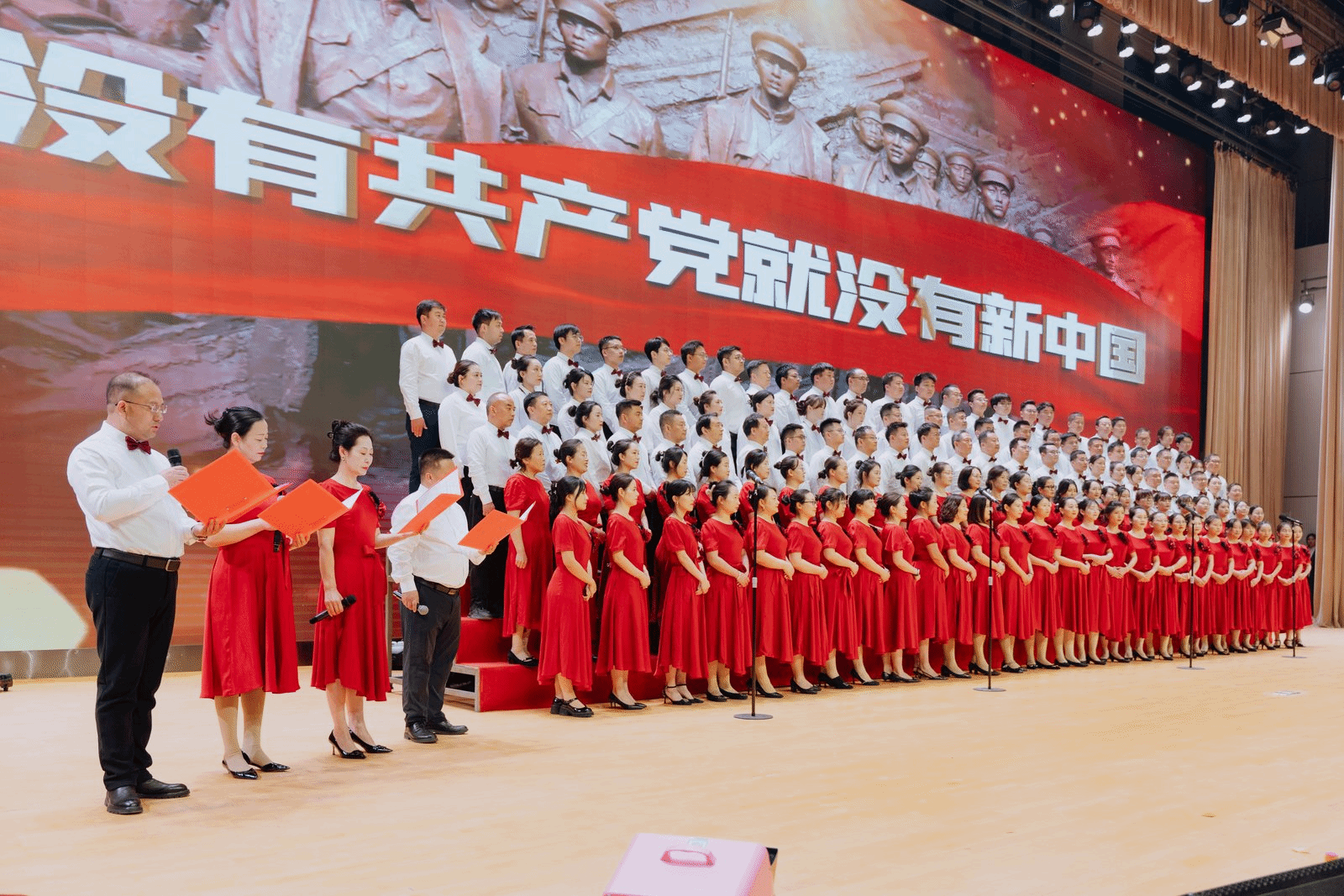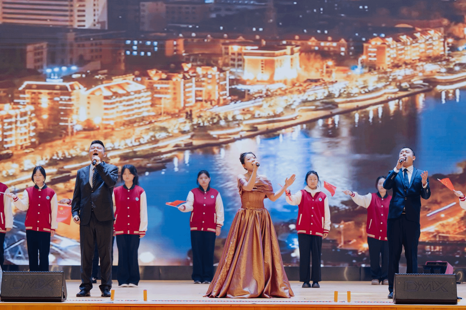 晚会在教师合唱《歌唱祖国》《没有共产党就没有新中国》的深情旋律中拉开序幕。老师们精神饱满、歌声嘹亮,用真挚的情感致敬祖国、致敬时代,彰显家国情怀与责任担当。