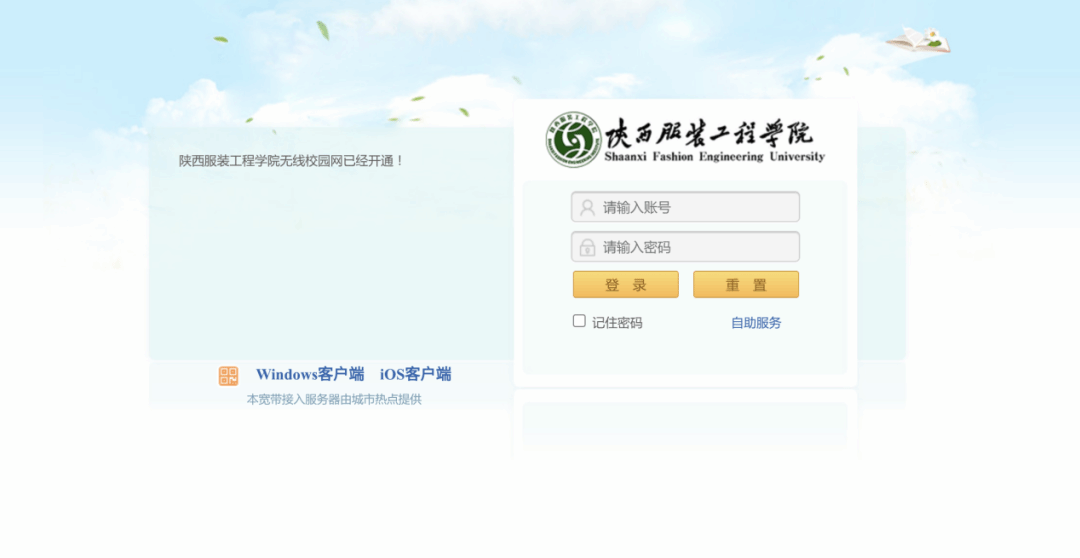 温馨提示:初始账号为本人身份证号,密码为身份证号码后六位。如无法登录请在“陕服学工”小程序的“Wi-Fi缴费”模块激活账号并缴费。
