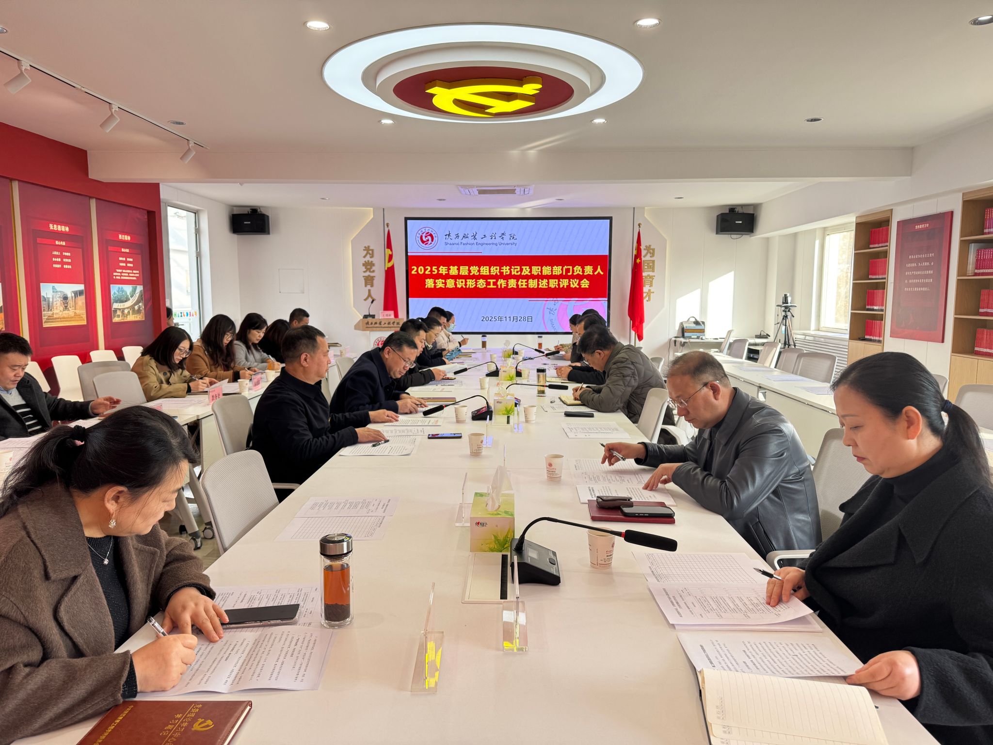 陕服新闻网讯(菅建伟)11月28日上午,学校党委在行政中心326会议室召开2025年基层党组织书记及职能部门负责人落实意识形态工作责任制述职评议会。校党委委员、纪委委员,各院党委(党总支、直属党支部)书记、机关各党支部书记,党政办、党委工作部、教工部、学工部(校团委)、教务处、科技处、信息化处、图书馆等单位主要负责人参加会议。党委副书记、纪委书记刘继兵主持会议。会上,服装学院党委等11个二级学院党委(党总支、直属党支部)...