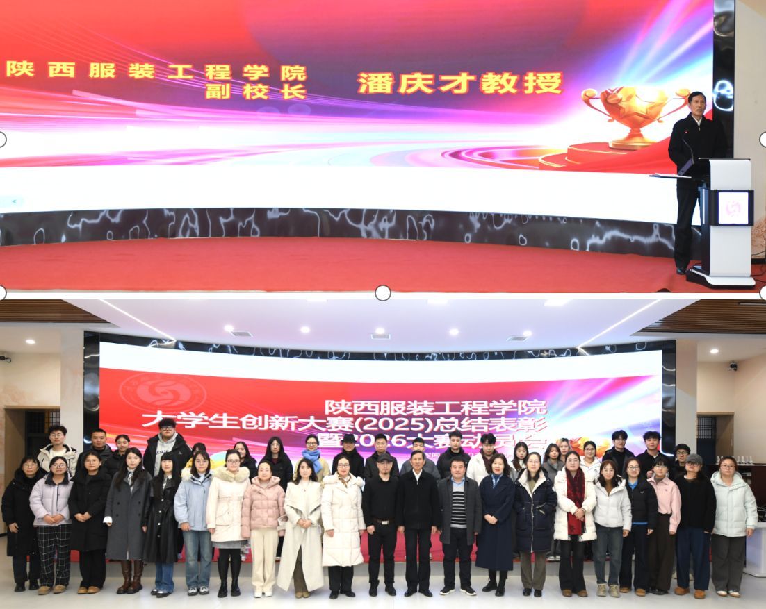 会上,双创学院负责人对2025年大赛工作进行了全面总结,并宣读《关于公布陕西服装工程学院大学生创新大赛(2025)获奖结果的通知》,肯定了师生在赛事中取得的突破性成绩。