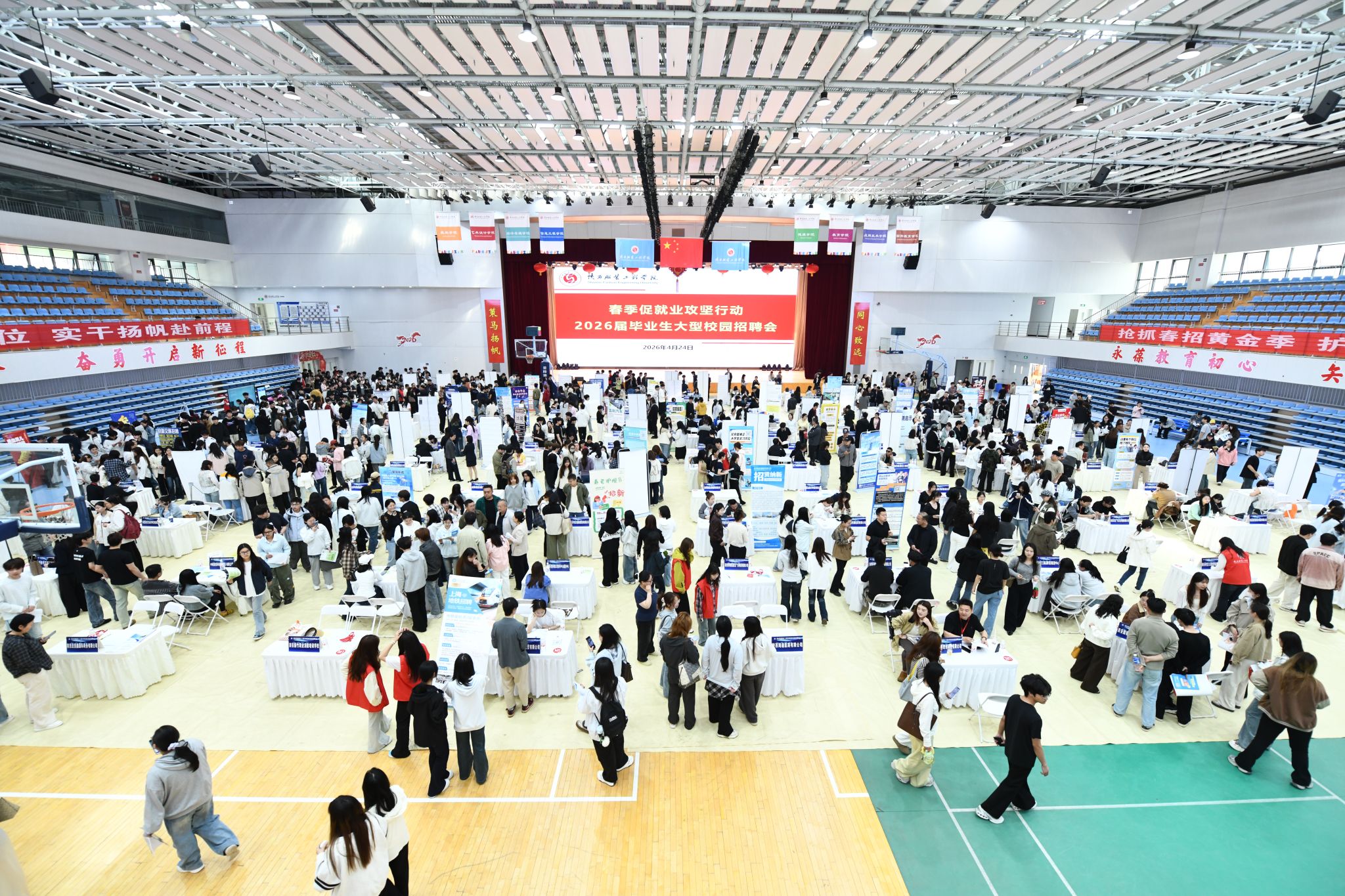 陕服新闻网讯(葛成)为深入贯彻落实国家关于高校毕业生就业工作的决策部署,全力推进教育部“春季促就业攻坚行动”走深走实,4月24日,我校2026届毕业生“春季促就业攻坚行动”大型综合类校园双选会在学校体育馆成功举办。此次双选会是我校聚力攻坚、促进毕业生高质量充分就业的关键举措,也是深化产教融合、服务区域人才需求的生动实践。