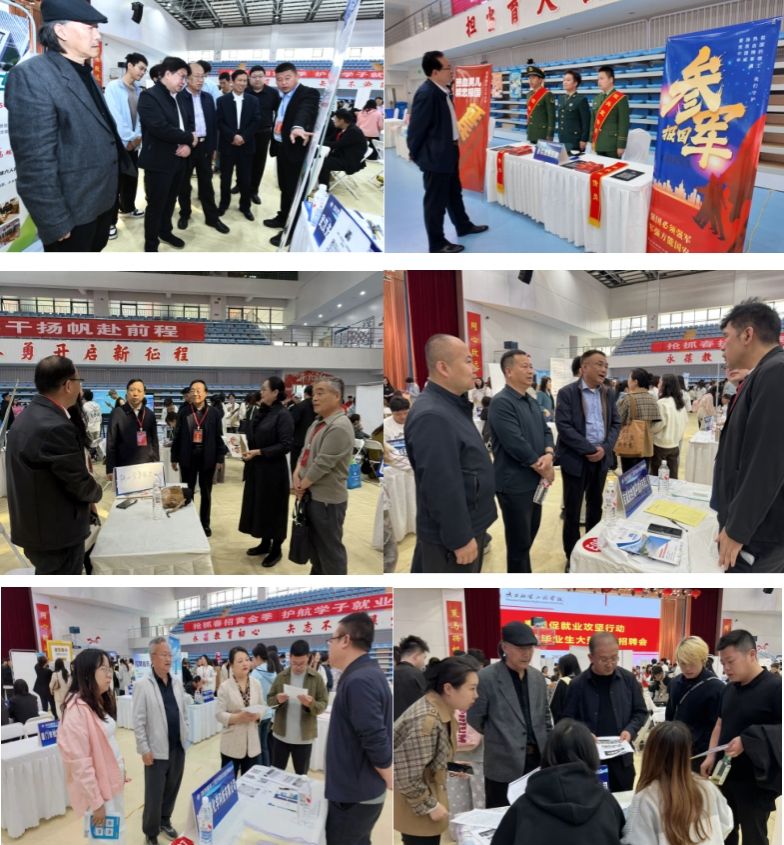 深入一线,校企协同育人。校党委书记王岗、副校长潘庆才、党委副书记刘继兵、校长助理罗文谦等校领导亲临招聘会一线,逐家走访用人单位,与企业负责人深入交流,详细调研人才需求标准与市场动向,并就进一步深化产教融合、拓宽就业渠道、优化人才培养模式等议题交换意见。各二级学院负责人、毕业班辅导员全程在场,积极引导毕业生树立正确的择业观、就业观,抢抓春季招聘黄金期,推动个人职业规划与国家战略、区域发展需求同频共振。